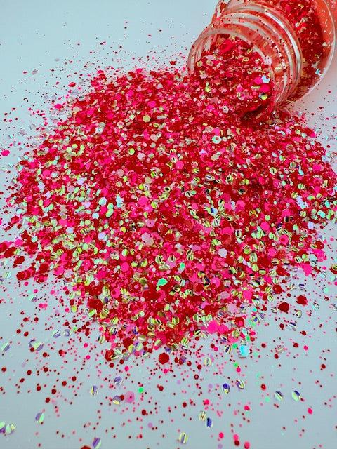 Cherry On Top- Red Pink White Custom Mixed Bubble Glitter 10-6