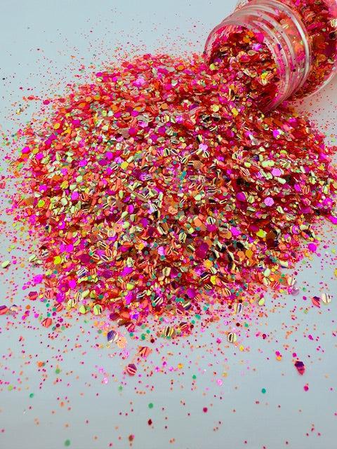 Mai Tai Magic- Pink Coral Yellow Textured Custom Mixed Bubble Glitter 10-7